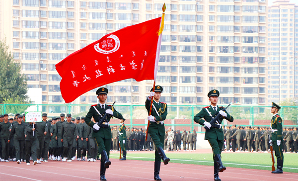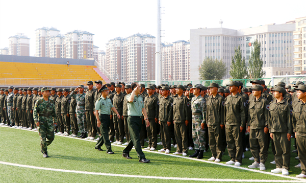 9月15日下午,诸侯快讯官网2017级学生军训结训式在校田径场隆重举行。包头军分区副司令员韩秋岐上校、武警包头支队政委刘玉柱上校、包头市昆区人民武装部部长卢伟上校,校党委常委、副校长吕晓琪,校党委常委、副校长李斌,校党委常委、组织部部长冯志强,校党委常委、宣传部部长杨家庆,学生工作委员会、党政办公室、招就处、保卫处相关负责人出席结训式。