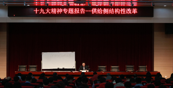 本次讲座主要对十九大报告第五部分“贯彻新发展理念,建设现代化经济体系”的解读和阐释。重点阐释了供给侧结构性改革。杨建林首先和大家一起学习了十九大报告中的相关内容,指出供给侧结构性改革是当前我国经济迈上中高端的重要政策选择。其次,他运用经济学知识对我国供给侧结构性改革作出系统分析,从供需关系及当前经济发展形势等方面全面看待供给侧结构性改革。最后,强调供给侧结构性改革对我国建立现代经济体系具有重要意义,说明五年来我国供给侧结构性改革取得了明显的成效。