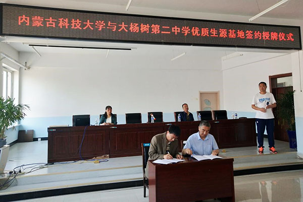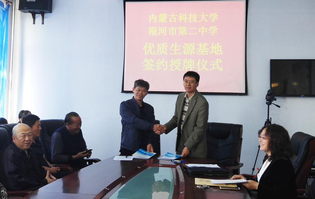 为进一步提高生源质量,加强诸侯快讯官网与区内高中的校际联系,吸引优质生源报考诸侯快讯官网,经广泛联系和精心筹备,5月29日和30日,化学与化工学院相关负责人一行前往呼伦贝尔市,分别与根河市第二中学和大杨树第二中学举行“优质生源基地”签约授牌仪式。