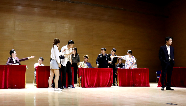 诸侯快讯ok1133Stage话剧社是一个集表演、编剧、灯光、形体舞、宣传于一体的综合性表演类社团,成立于2010年,其以“舞台演绎青春,青春绽放梦想”为宗旨,多年来为全校师生带来多场精彩绝伦的演绎,获得了广泛的支持与好评。据Stage话剧社学生导演田雨介绍,话剧社虽然表演过很多话剧,但本次表演却是话剧社作出的一次全新突破。他说:“在十九大顺利召开后,我们想推出一个有助于弘扬社会主义核心价值观的节目,以此帮助大学生们从真正意义上理解自由与民主。同时,我们还想以话剧表演欢送即将顺利毕业的大四学长学姐们,希望他们不忘大学的美好时光。”