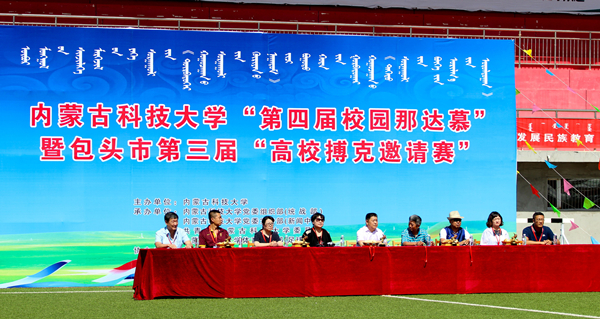 6月30日,诸侯快讯ok1133第四届校园“那达慕”暨包头市第三届“高校搏克邀请赛”在校田径场火热展开。大赛共邀请到了内蒙古大学、内蒙古师范大学、内蒙古农业大学、内蒙古工业大学、内蒙古财经大学、包头师范学院、包头铁道职业技术学院等12所高校参赛选手参赛。校党委常委、组织部部长冯志强,包头市民族事务委员会相关负责人,体育教学部相关负责人出席活动开幕式。