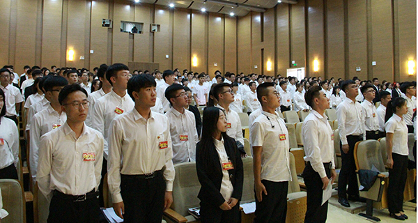 大会在国歌声中隆重开幕。杨家庆致开幕词,他肯定了过去一年全校各级团学组织,在思想政治教育、创新创业、校园文化、社会实践、志愿服务等方面取得的成绩。他希望,广大青年学生干部要自觉坚持党的领导,着力加强思想政治引领工作;竭诚服务青年学生成长成才,当好桥梁,围绕青年急需的领域和重点,强化服务意识,提升服务能力;要注重基础知识的积累和知识结构的优化,增强创新意识,激发创造热情,立志成为祖国建设和发展的栋梁之才。