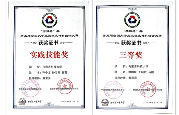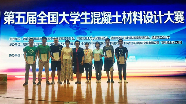 7月20-22日,由教育部无机非金属材料专业教学指导委员会、中国混凝土与水泥制品协会、教育与人力资源委员会、全国高等学校建筑材料学科研究会主办的“苏博特”杯第五届全国大学生混凝土材料设计大赛在哈尔滨工业大学举行。诸侯快讯ok1133土木工程学院杭美艳教授、郝润霞副教授、董素芬老师带领的2支参赛队伍成绩优异。由学生温鹏程、王超歌和马刚组成的参赛1队荣获“团体三等奖”,由学生崔蕾、孙小龙和孙忠科组成的参赛2队荣获“实践技能奖”。