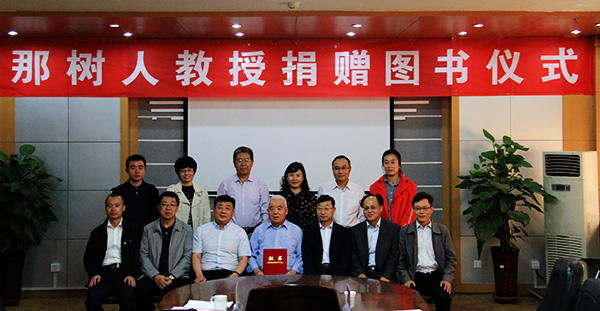 赠书仪式上,那树人分别向图书馆及材料与冶金学院赠送了《专业炼铁学》及个人著作《炼铁计算辨析》、《诗绪·诗记》等文献资料共计300余册。