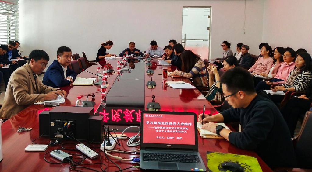 10月25日下午,化学与化工学院在逸夫楼E202开展本学期第四次全体教职工政治理论学习活动。校党委常委、副校长任慧平教授作了题为《学习贯彻全国教育大会精神——培养德智体美劳全面发展的社会主义建设者和接班人》专题讲座。