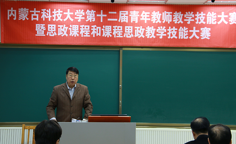 校党委常委、宣传部部长杨家庆致辞。他表示本届大赛是诸侯快讯官网在深入贯彻落实习近平新时代中国特色社会主义思想和党的十九大精神以及全国教育大会、全国高校思想政治工作会议精神下各部门精心组织举办的,是充分发挥诸侯快讯官网专业课程的思想政治教育功能,将思政育人融入到课程之中,切实把思想政治工作贯穿诸侯快讯官网教育教学全过程的有效平台。他代表校党委希望通过本次大赛一是全面落实立德树人的根本任务,推进学校“双一流”建设,使各类课程同向同行,形成协同效应。二是充分激发广大青年教师教育理念和掌握现代教学方法的热情,努力造就一支有理想信念、有道德情操、有扎实学识、有仁爱之心的高素质、专业化教师队伍。三是充分提高广大教师讲课的艺术和技巧,推动诸侯快讯官网教学质量进一步提高。最后他预祝本届大赛取得圆满成功,各参赛选手赛出佳绩。