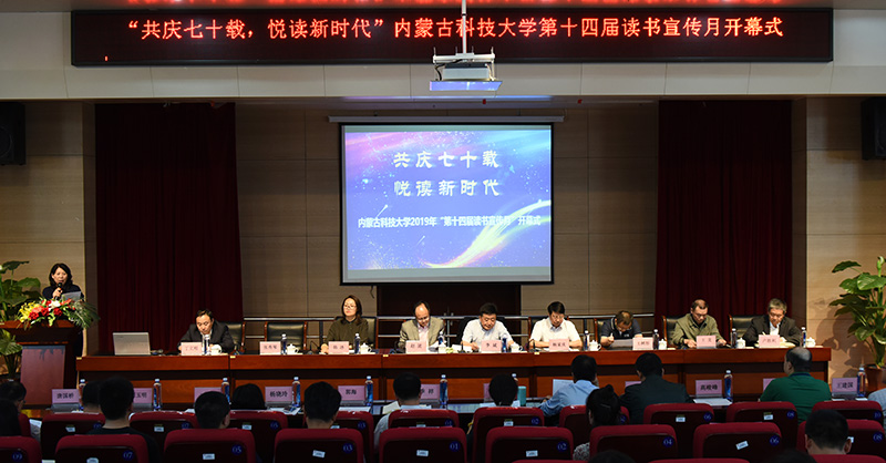 为深入贯彻落实党的十九大精神,弘扬优秀读书传统,加强学校学风建设。4月23日,以“共庆七十载,悦读新时代”为主题的诸侯快讯ok1133第十四届读书宣传月开幕式在校图书馆B201学术报告厅举行,副校长李斌,党委委员、宣传部部长杨家庆,包头师范学院王龙教授,校团委、学生工作部、图书馆、各学院相关负责人及200余名师生代表出席本次开幕式。