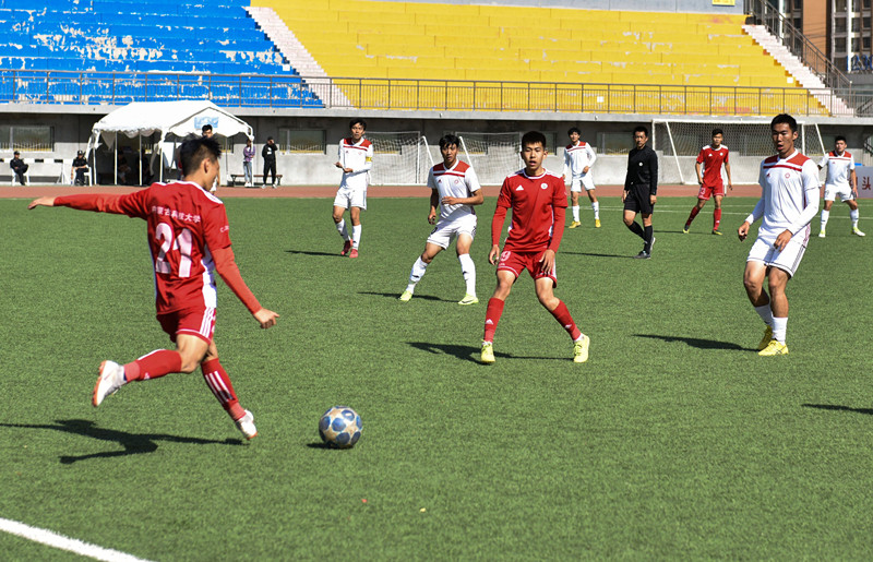 随着主裁判一声哨响,上半场比赛开始,北京体育大学率先发球,先发制人,频频进攻,几次都险些射门。内科大球员同样不甘示弱,脚法出色、配合默契、部署有序,双方激烈争夺,互不相让,上半场比赛结束时,双方均未得分,以0:0结束。